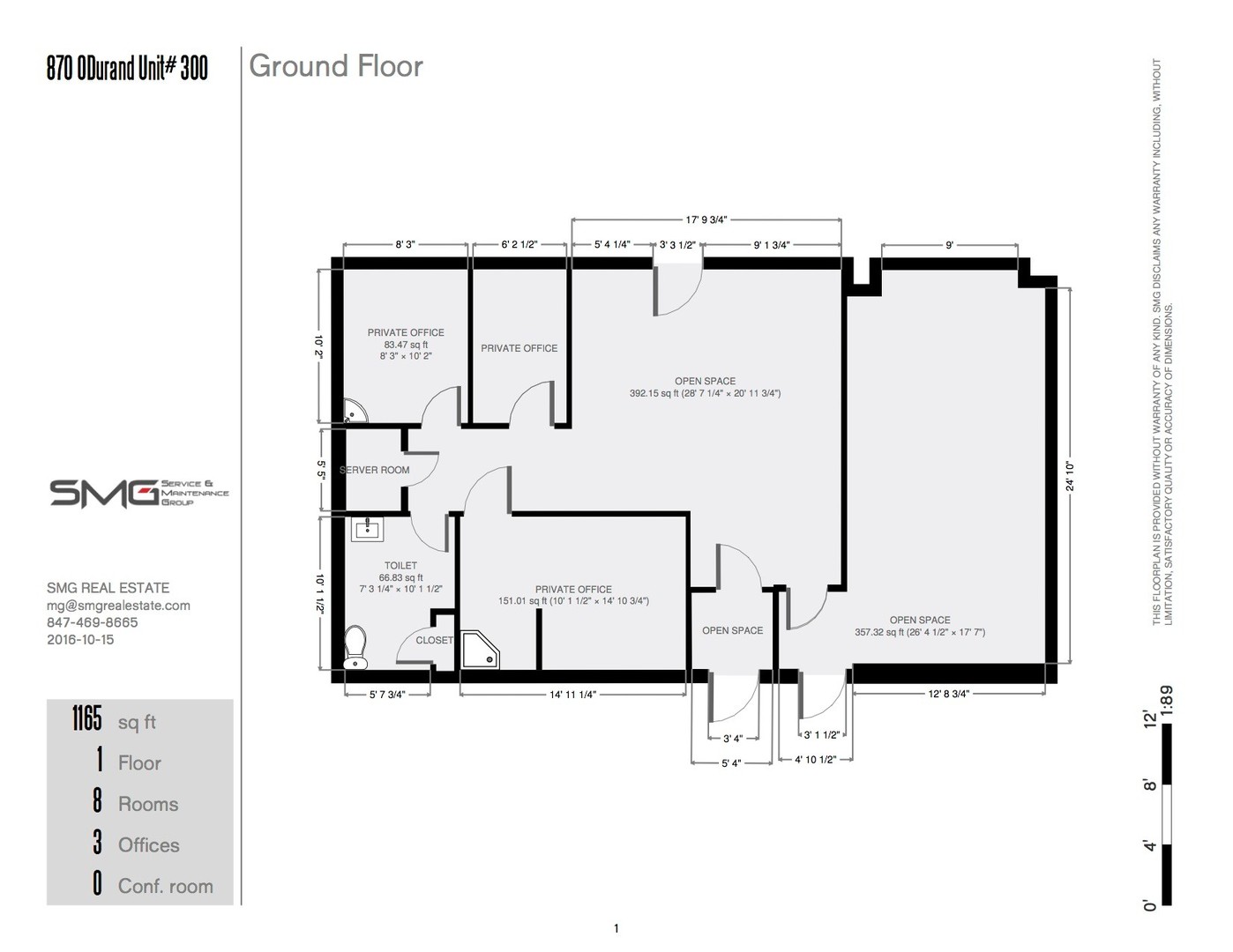 Retail space on Durand Ave in a strip mall. Large open space, conference area and 3 private offices, restroom and a full basement space (not built out) for storage. Carpet throughout the office area with plenty of parking. Former tenant used the space for therapy, so there is a shower in one office.